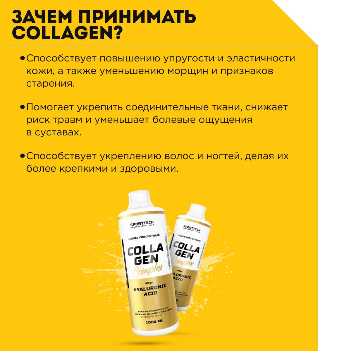 Collagen liquid от SPORTTECH – это эффективный и легкоусвояемый жидкий комплекс аминокислот из гидролизата коллагена, обогащенный витаминами. Он поможет вам быстро восстанавливаться после тренировок, сделает суставы и связки более сильными, а также положительно скажется на красоте и здоровье кожи, волос и ногтей. После 40 лет выработка коллагена начинает снижаться и прекращается совсем, поэтому необходим прием этого белка извне. Также его дополнительный прием необходим во время физических нагрузок.