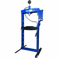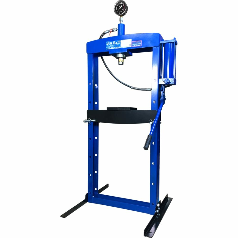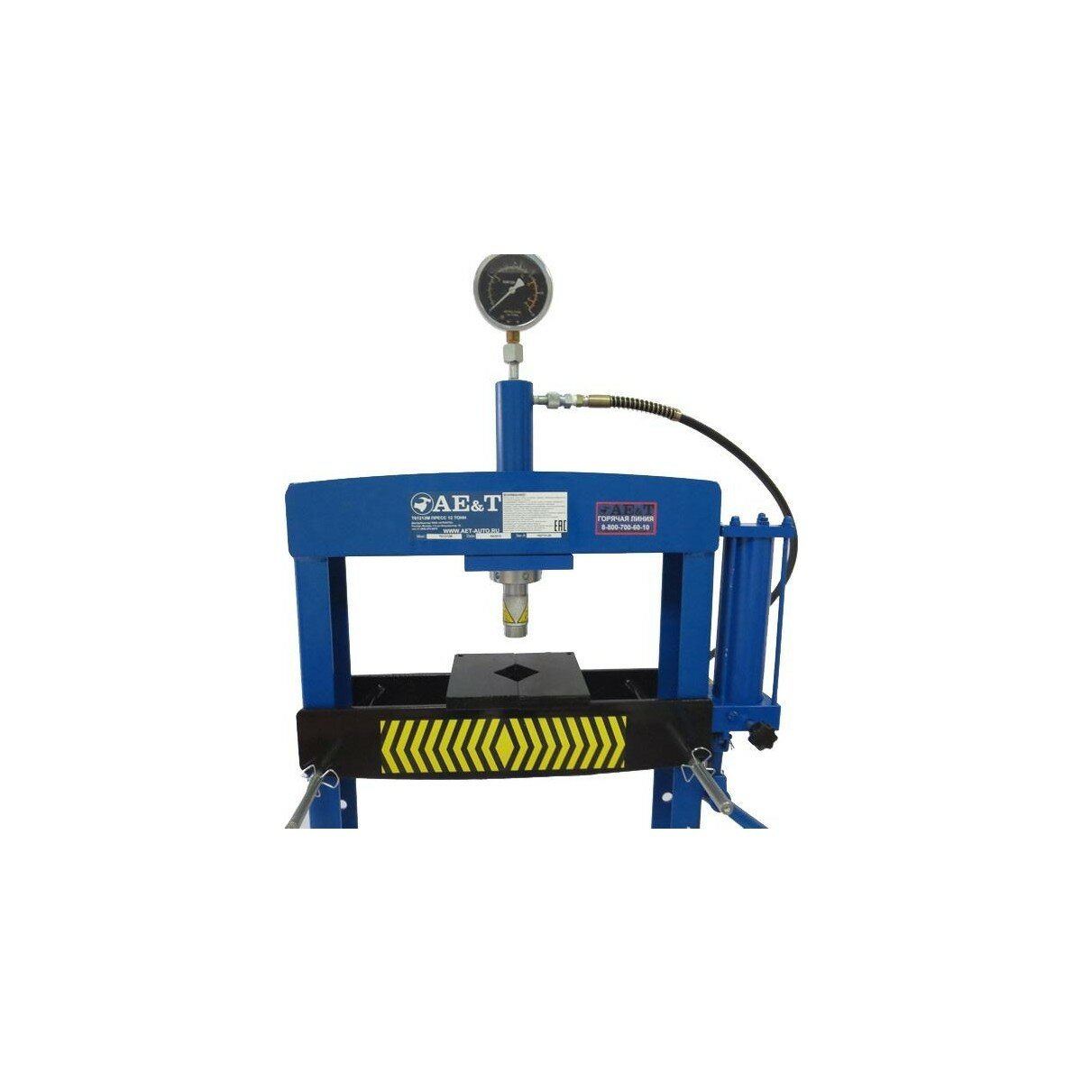 Надёжный и испытанный, поставляется с гарантией 1 год. Укомплектован удобным большим манометром. Быстро и просто настраивается под конкретные условия: траверсу можно перевесить ниже или выше на раме и т. д. Прочно стоит на месте благодаря широким толстым опорам.