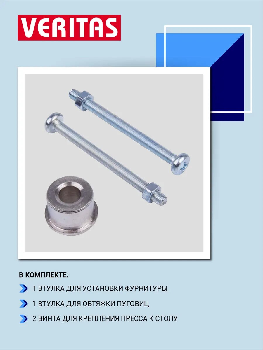 Что входит в Комплектацию: 1 Втулка для установки фурнитуры 1 Втулка для оттяжки пуговицы 2 Винта для крепления пресса к столу