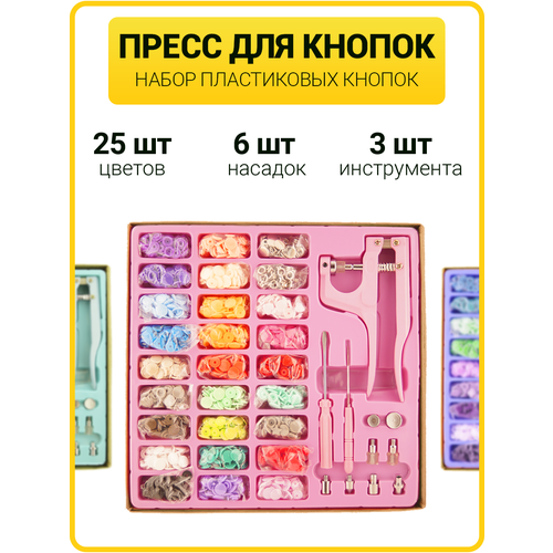 Набор для рукоделия и творчества предназначен для установки пластиковых кнопок 10 мм (Т3), 12 мм (Т5) и 14 мм (Т8) и металлических кнопок 12 мм, а также люверсов с внутренним диаметром 5 мм. Набор состоит из: 3 инструментов (ручной пресс для установки кнопок и люверсов, отвертка и шило), 6 насадок для ручного пресса (насадки для установки пластиковых кнопок для одежды Т3, Т5, Т8; насадка для установки металлических кнопок 12 мм; насадка для установки люверсов 5 мм; насадка для пробивания отверстий диаметром 4.5 мм), пластиковых кнопок 12 мм (240 шт), металлических кнопок 12 мм (10 шт) и люверсов 5 мм (40 шт). Данный набор прост и удобен в использовании, благодаря этому активно применяется в творческой деятельности, а также в быту: ремонт одежды и текстильное шитье. Приобретая данный набор с установщиком, Вы получаете: установщик для кнопок и установщик для люверсов в одном устройстве. При необходимости Вы сможете дополнить данный набор, докупив в нашем магазине нужные кнопки для одежды пластиковые или металлические, большие или маленькие, а также люверсы нужного Вам размера.