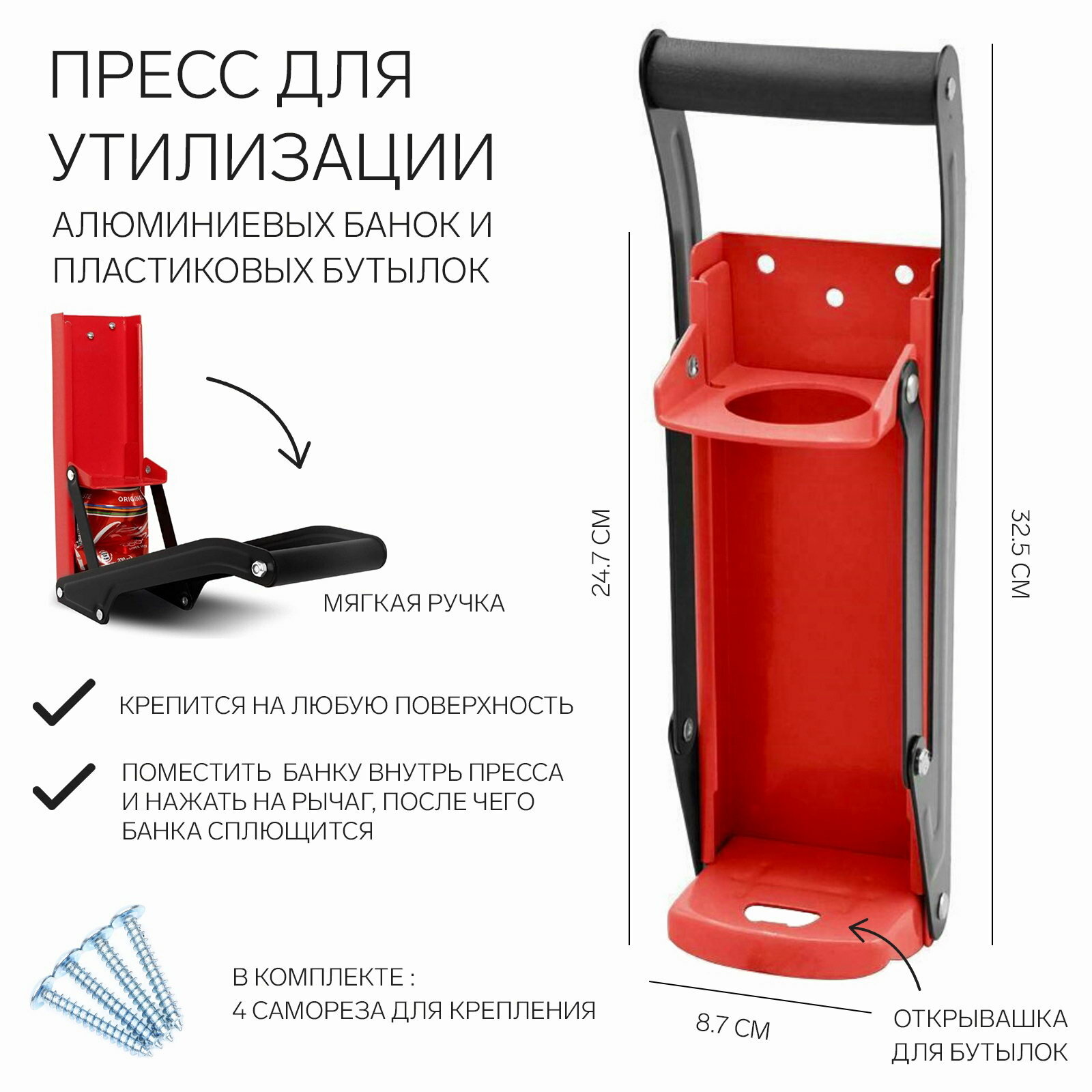 Пресс для утилизации алюминиевых банок и пластиковых бутылок, 32.5×8.7×24.7, красный: сравнение цен, характеристики, фото, актуальное наличие и цены.