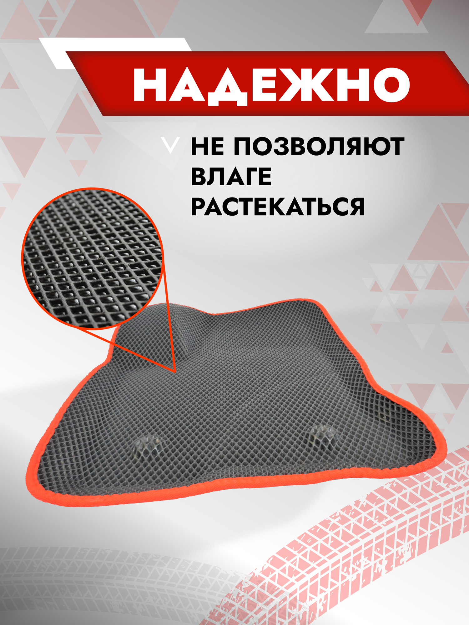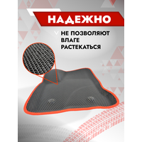 Формованные коврики EVA выполнены из приятного и лёгкого материала Ethylene Vinyl Acetate, который обеспечивает постоянный комфорт и удобство. Варианты цвета окантовки - Черный, синий, красный, серый. Глубокая ячеистая структура хорошо удерживает воду и мусор даже во время активного вождения автомобиля. Чтобы очистить коврики от скопившейся грязи, достаточно перевернуть их. Материал ковров прекрасно переносит высокие и низкие температуры, спокойно переносит контакты с химическими реагентами. Не деформируется и не пахнет при жаре до +50 °С, не становится хрупким и не трескается при морозе до -40 °С. Данные ковры изготавливаются на пресс-формах, идеально повторяют параметры ковролина вашего авто.
