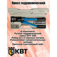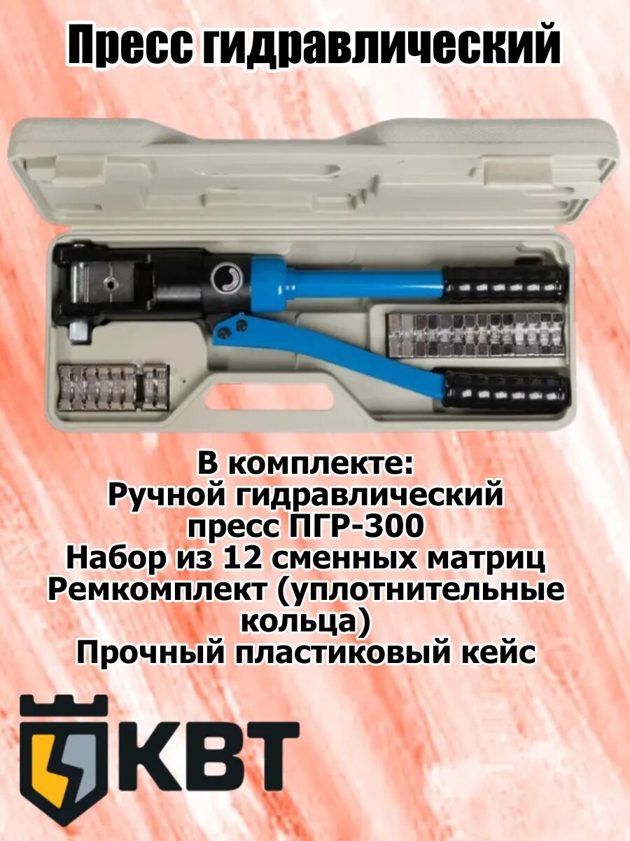 Пресс гидравлический ручной ПГР-300 предназначен для опрессовывания медных, алюминиевых, алюмомедных наконечников и гильз комплектными наборами гексагональных матриц от 10 до 300мм2.