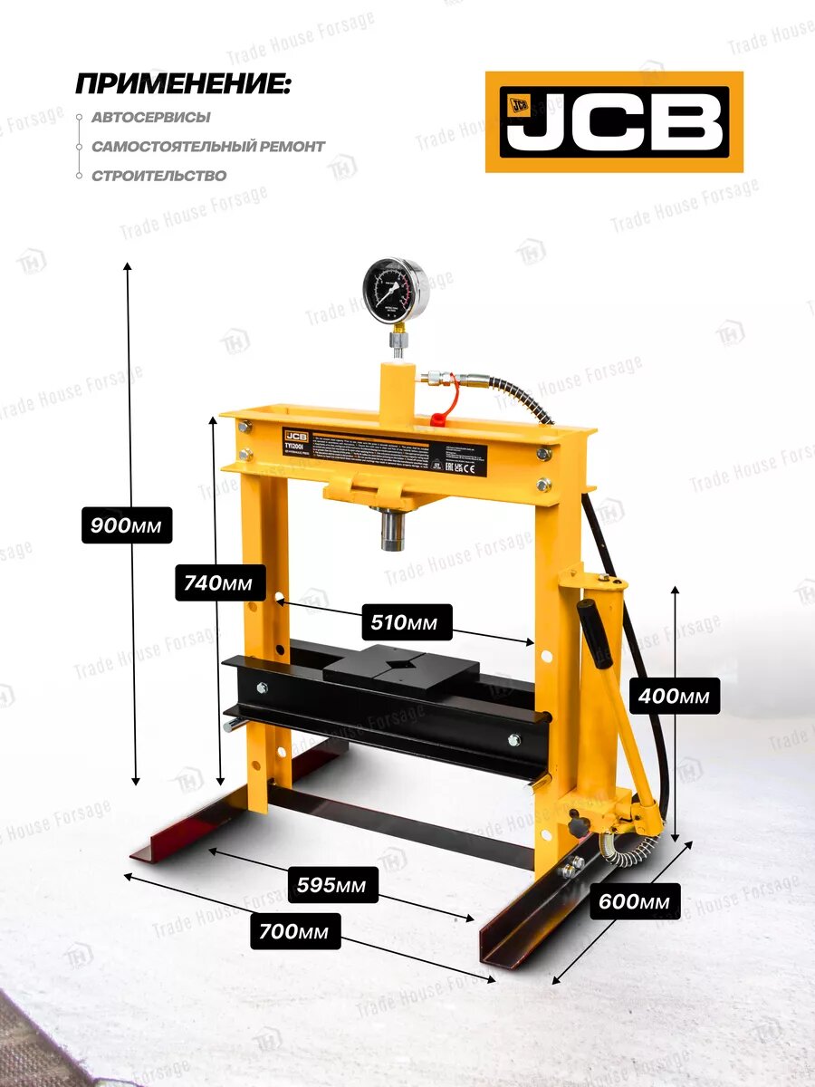 Пресс гидравлический напольный от бренда JCB - это мощное и надежное оборудование, предназначенное для выполнения различных видов работ, таких как сжатие, выгибание, прессование и другие гидравлические операции.