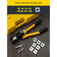 Комплект сменных матриц для работы с кабелями различного сечения.