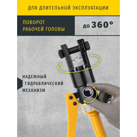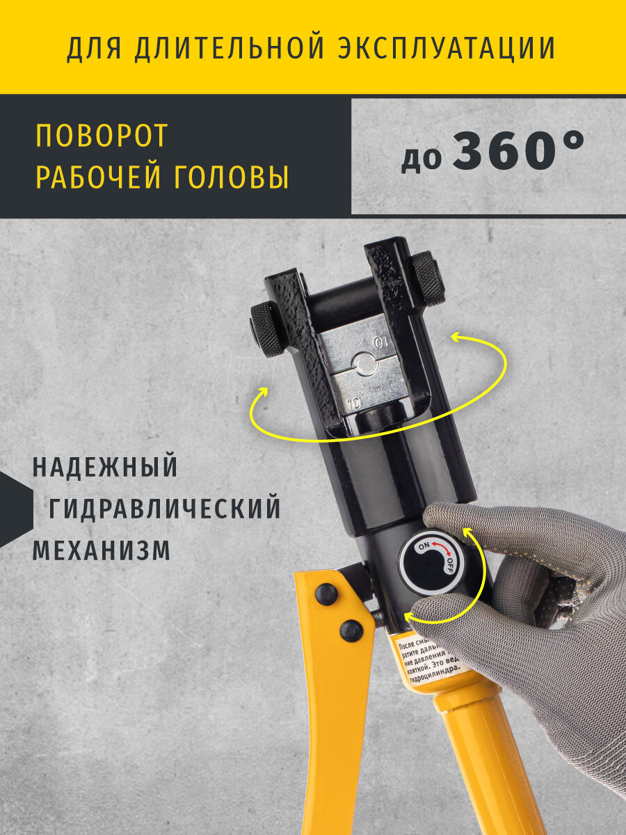 на провода и кабели с медными и алюминиевыми жилами. Полное смыкание матриц происходит на 20% быстрее за счет использования бокового штока с увеличенной длиной хода.