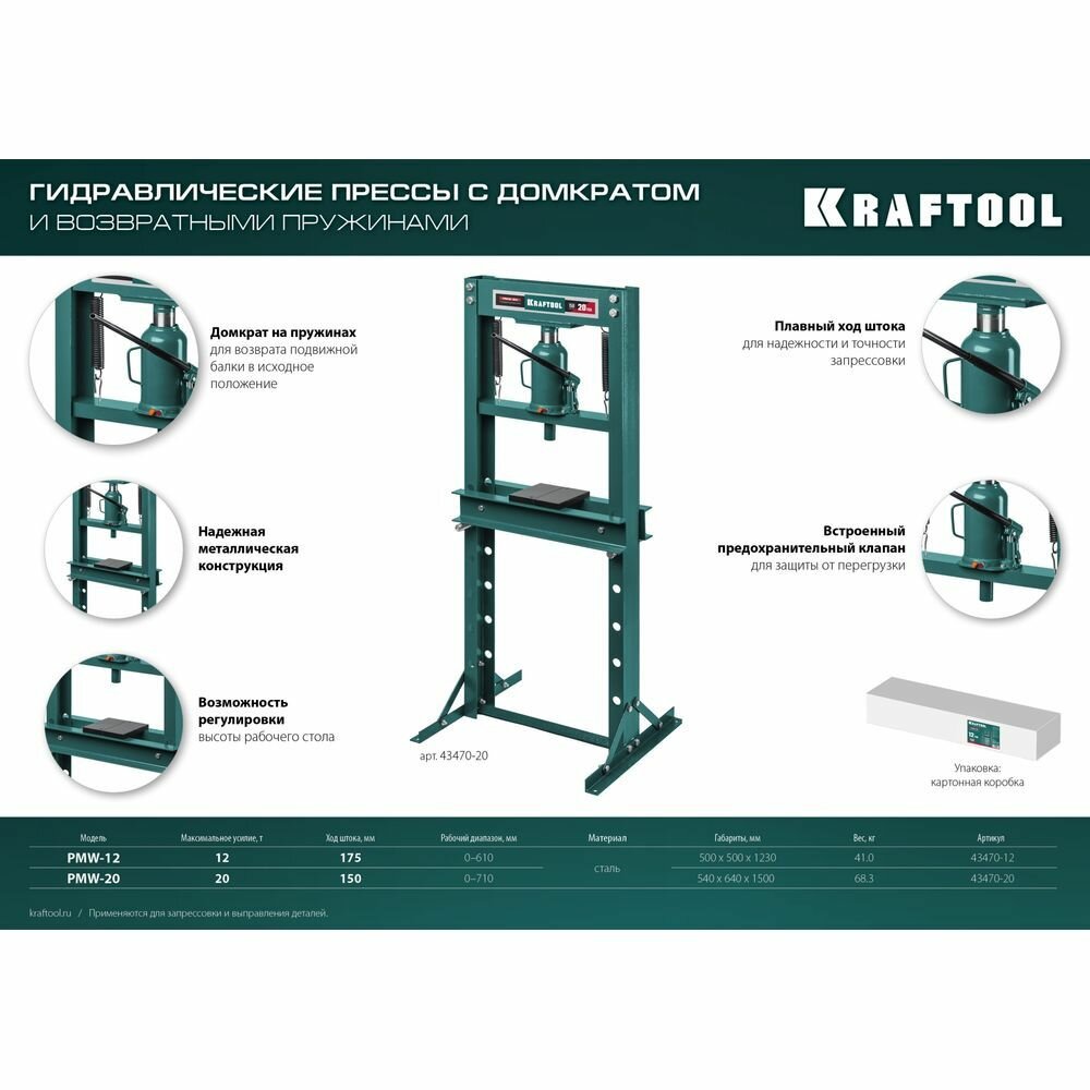 KRAFTOOL PMW-12, 12 т, гидравлический пресс с домкратом и возвратными пружинами (43470-12): сравнение цен, характеристики, фото, актуальное наличие и цены.
