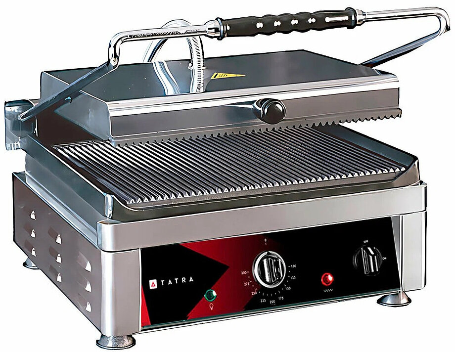 Контактный гриль TATRA TCG 3627 RR предназначен для использования на предприятиях общественного питания и торговли для разогрева блюд из мяса, птицы и овощей, а также приготовления горячих бутербродов и сэндвичей.