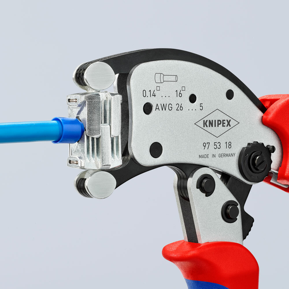 Купить Пресс-клещи для контактных гильз DIN 46228 1+4 Twistor16, обжим: квадрат, поворот 360°, 0.14-16.0 мм², 2 х 6 мм², длина 200 мм, SB Knipex KN-975318SB с доставкой по всей России.