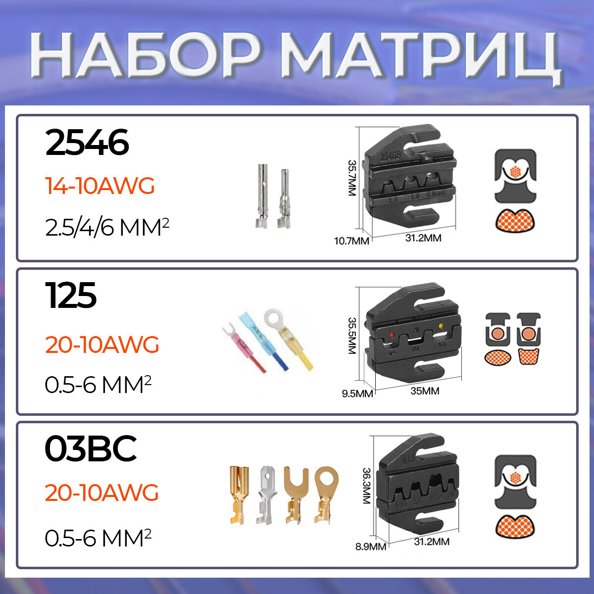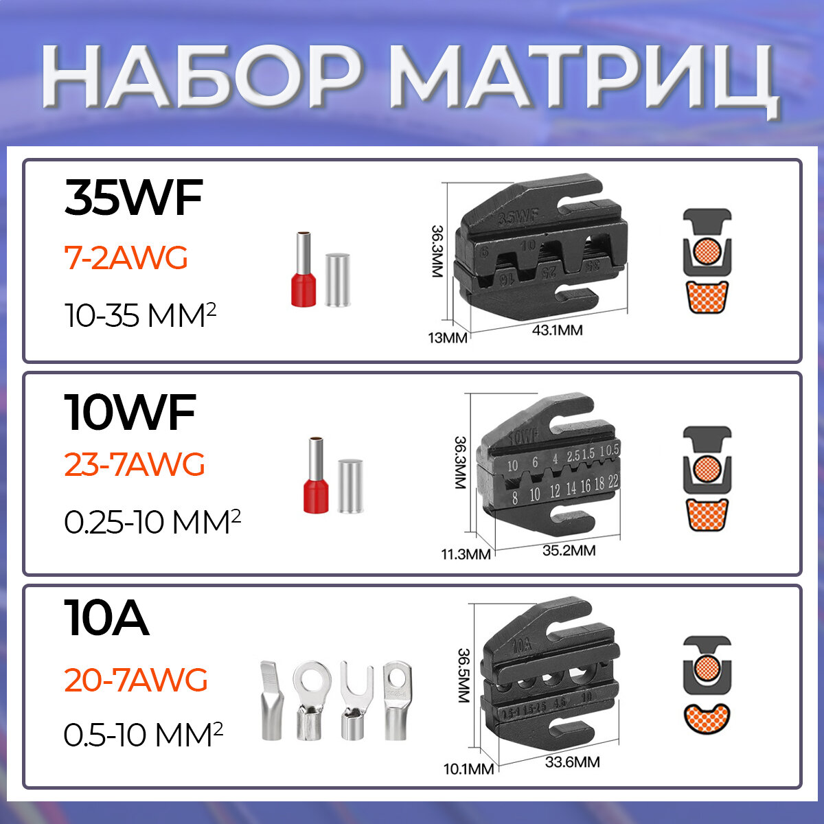 Высокоточные матрицы: матрицы выкованы из высокопрочной инструментальной стали для большей твердости, более длительного срока службы и более надежных результатов обжима.