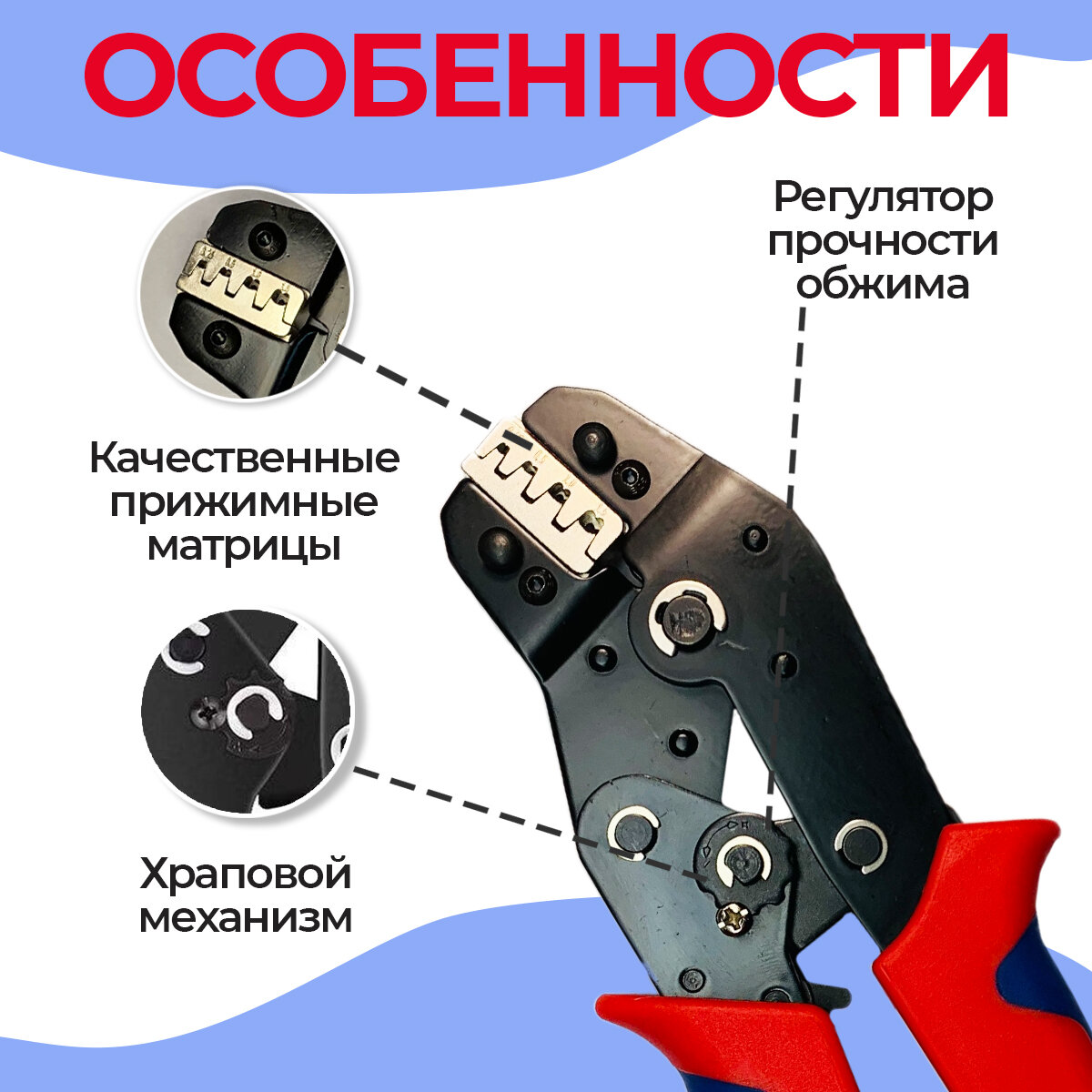 Высокоточные Челюсти: Челюсти выкованы из высокопрочной инструментальной стали для большей твердости, более длительного срока службы и более надежных результатов обжима.