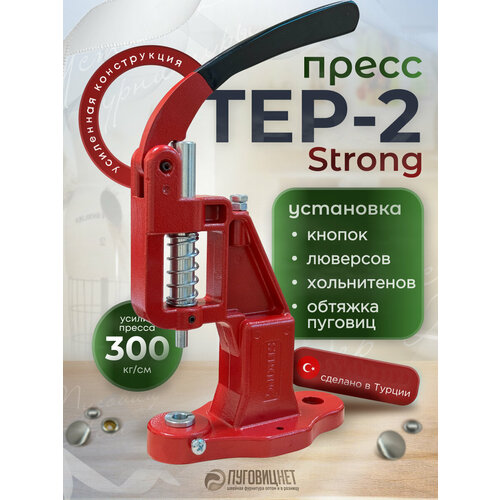 В комплекте с прессом прилагается крепление для стола и переходник для обтяжки пуговиц. Установка люверсов от 3 до 16мм. Пресс для установки швейной фурнитуры незаменимый набор для рукоделия, творчества, шитья. С помощью пресса Тер -2 Вы с легкостью сможете установить любую фурнитуру: кнопки для одежды металлические, хольнитены, люверсы, пуговицы, пластиковые кнопки. Ручной пресс обладает повышенной работоспособностью, прочностью и износостойкостью, отлично подходит для изготовления одежды, украшении, бижутерии, кукл и игрушек. Это универсальный инструмент для установки люверсов на шторы, можно использовать его как пробойник для кожи или дырокол для ремня совместно с насадками, как набор для установки хольнитенов. С помощью насадок вы сможете установить фурнитуру для отверстий в коже. Тер 2 Пресс поставляется без насадок, они не входят в комплект, но необходимы для начала работы. К примеру, чтобы установить кнопки черные для одежды установочные металлические Омега и Альфа вам нужны насадки. В нашем магазине Вы можете приобрести швейное оборудование, фурнитуру и аксессуары. Нажимайте на название бренда и смотрите полный ассортимент. Внимание во время доставки коробка может быть повреждена. Мелкий скол НЕ является браком И НЕ влияет на работу пресса. Марка пресса может быть любой.