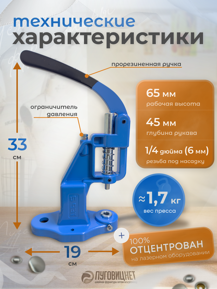Пресс Тер-2 для установки швейной фурнитуры для одежды кнопок, люверсов, пуговиц, хольнитенов, пробойников: сравнение цен, характеристики, фото, актуальное наличие и цены.