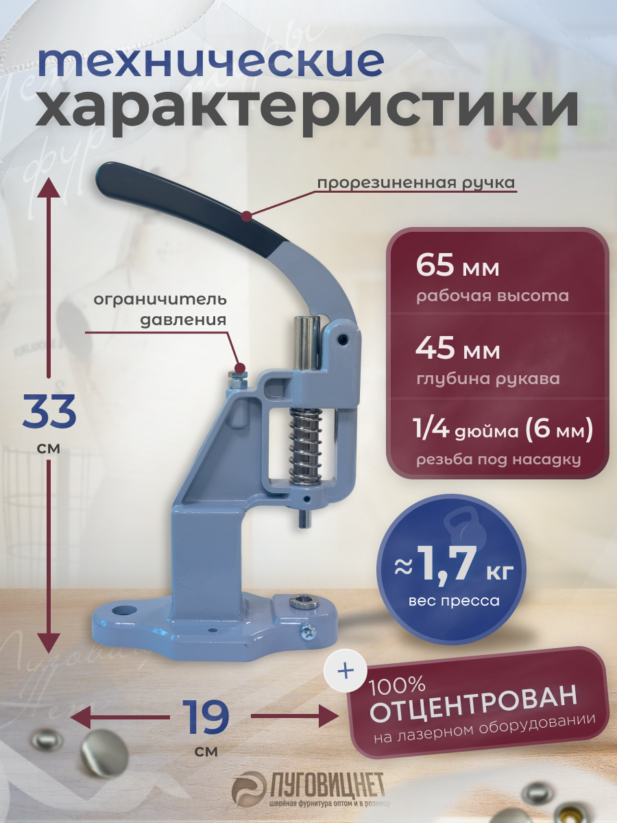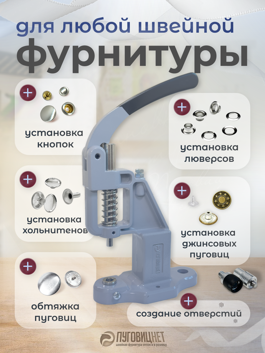 Пресс Тер-2 для установки швейной фурнитуры для одежды кнопок, люверсов, пуговиц, хольнитенов, пробойников серый: сравнение цен, характеристики, фото, актуальное наличие и цены.
