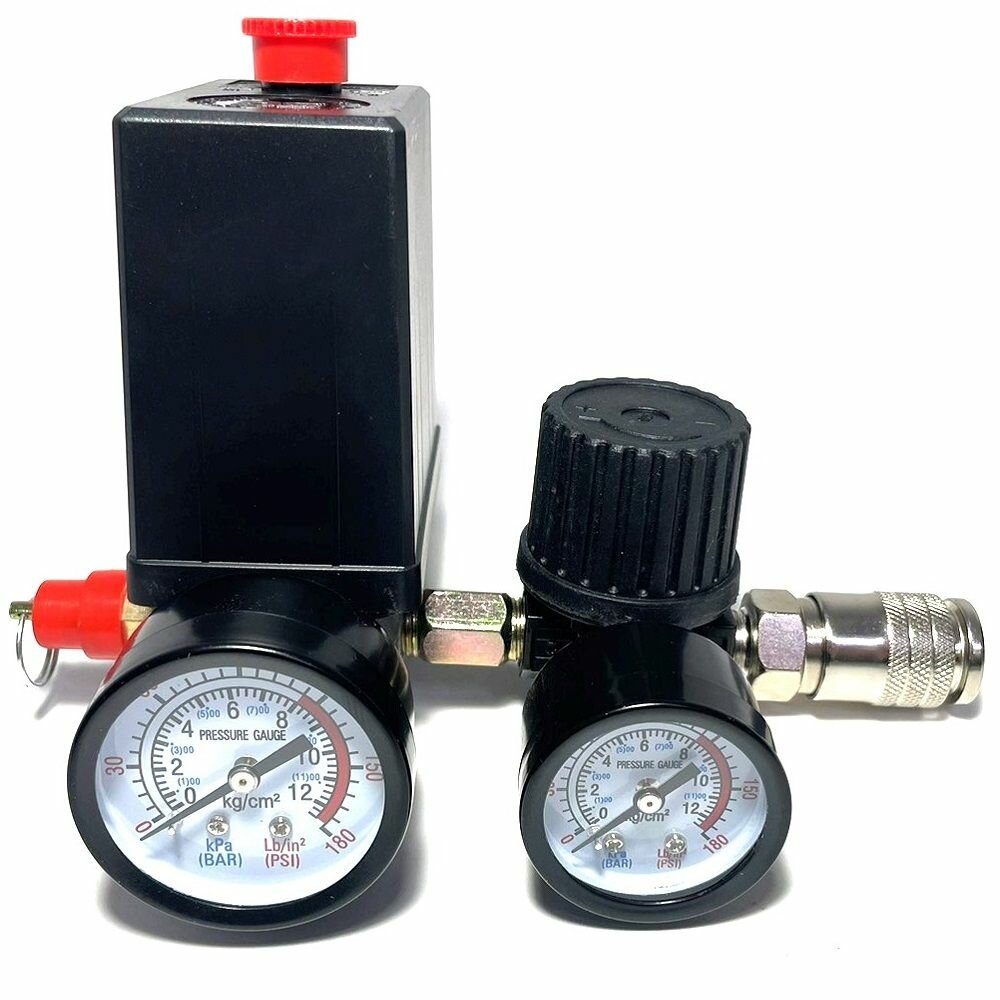 Прессостат / Реле давления + Редуктор в сборе для компрессора 220Вт 16Амп 12Bar (быстросъемы): сравнение цен, характеристики, фото, актуальное наличие и цены.