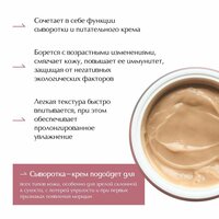 Преимущества уникального крем-серума в том, что он питает кожу намного глубже по сравнению с обычной сывороткой и гораздо быстрее усваивается кожей в сравнении с обычным кремом.