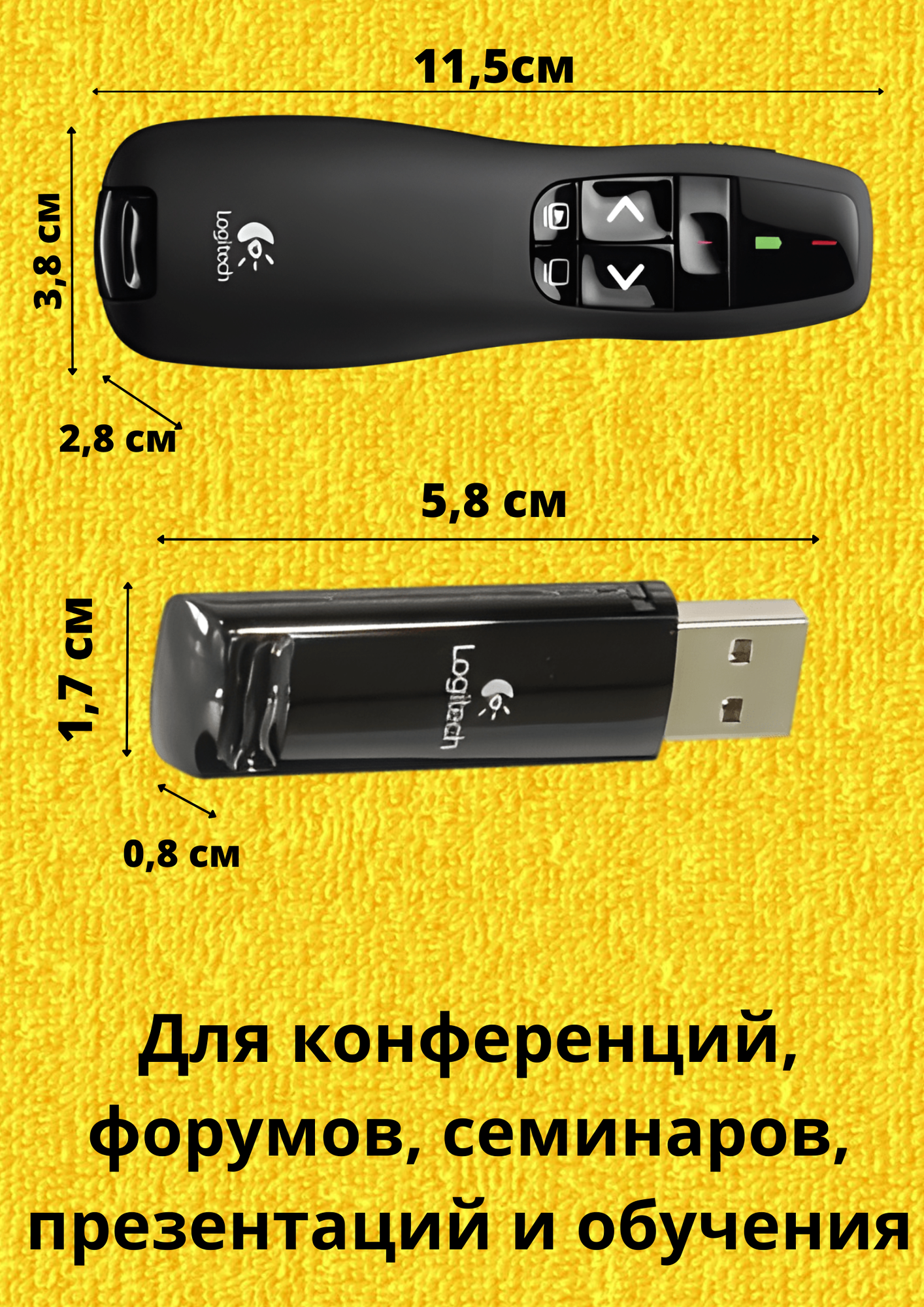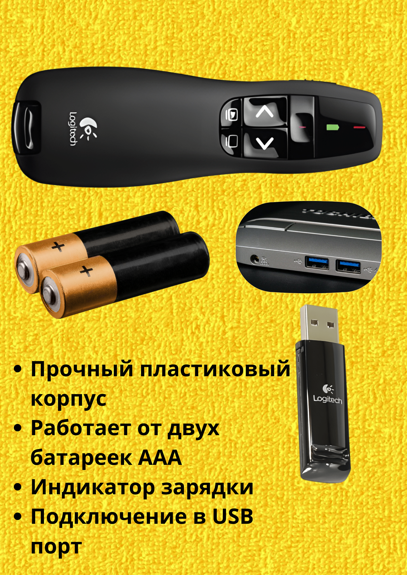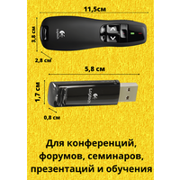 Это презентер, кликер, пульт презентационный, который обеспечивает высокую точность и быстрое соединение, благодаря чему вы сможете контролировать презентацию в любой ситуации. Если вы ищете надежный кликер для презентаций, Logitech R400 - отличный выбор!