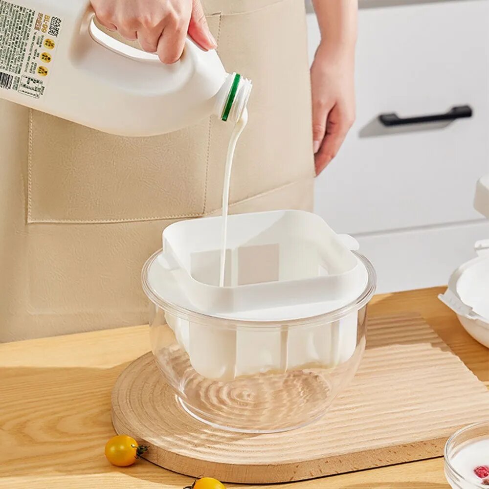 Почему стоит выбрать? Фильтр для йогурта и творога — практичное устройство для приготовления домашних молочных продуктов. Подходит для отделения сыворотки от йогурта, сыра, соусов, а также для удаления лишней жидкости из белковых коктейлей и смузи. Благодаря прочным материалам (PP, PS, уплотнитель, пружина из нержавеющей стали 304 и нейлоновая сетка) изделие устойчиво к износу и длительное время сохраняет функциональность. Прозрачная чаша позволяет наблюдать за процессом фильтрации. Объём: 3 л. Точные размеры: 205 × 205 × 160 мм. Компактная конструкция — удобно хранить и использовать в холодильнике. Съёмный фильтрующий элемент обеспечивает лёгкую очистку. Мелкоячеистая сетка качественно отделяет жидкость от твёрдой фракции. Многоразовое использование — надёжный выбор для кухонной утвари. Показать полностью Комплектацияфильтр