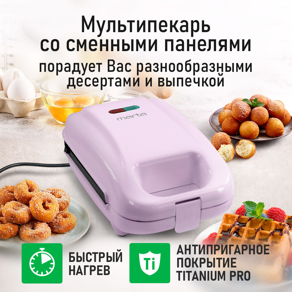 | Дополнительная информация | Прибор для выпечки со сменными панелями MARTA MT-SM1738A белый жемчуг 7 в 1 |