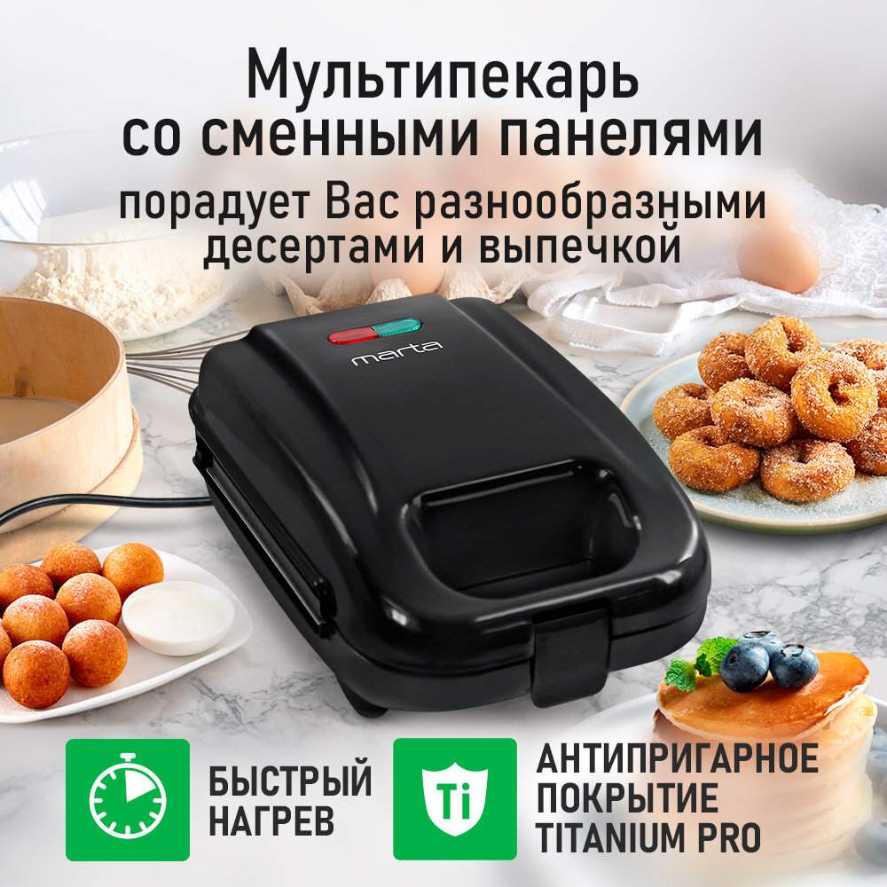 Прибор для выпечки MARTA MT-SM1738C, 9 в 1, мощность 850Вт, антипригарное покрытие: сравнение цен, характеристики, фото, актуальное наличие и цены.