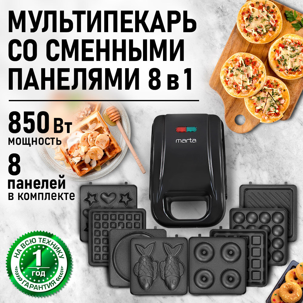 Прибор для выпечки со сменными панелями MARTA MT-SM1738B черный жемчуг 8 в 1: сравнение цен, характеристики, фото, актуальное наличие и цены.