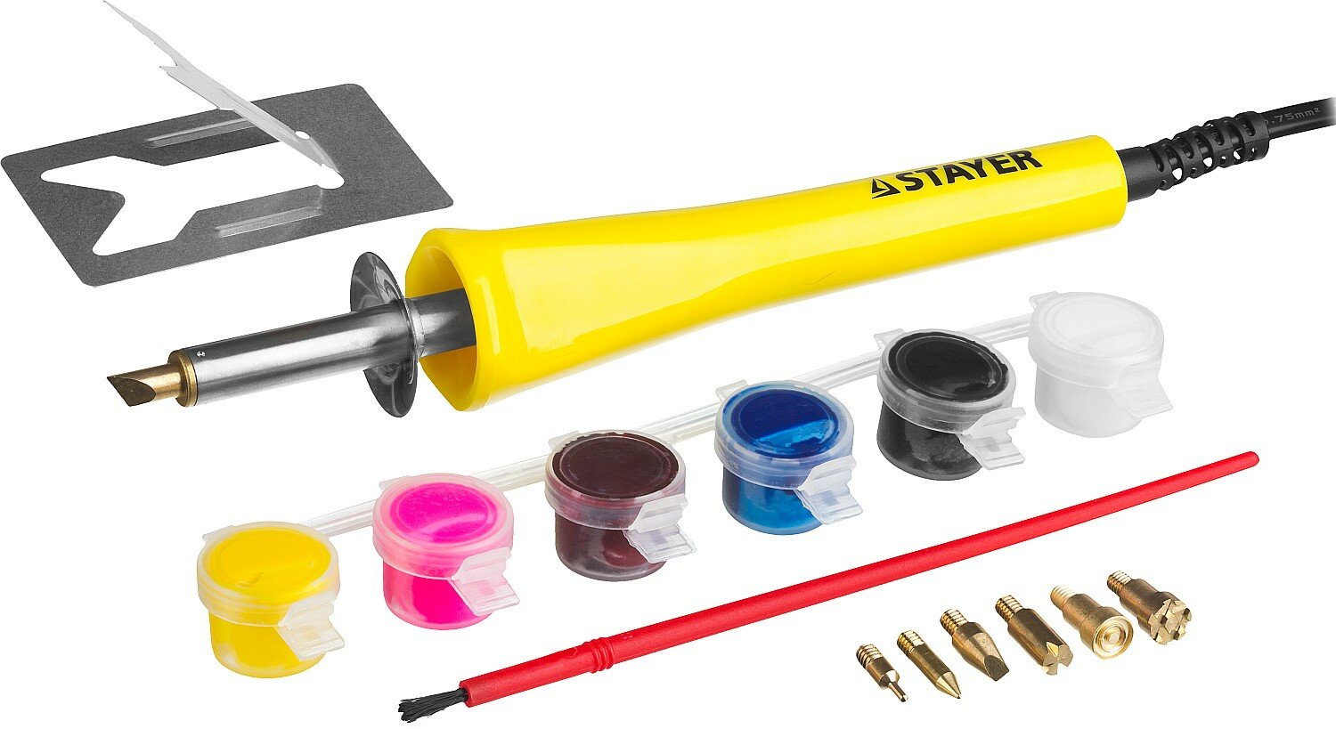 STAYER MAXTerm, 30 Вт, 2 в1, в наборе: 7 насадок + краски, прибор для выжигания и пайки (45220): сравнение цен, характеристики, фото, актуальное наличие и цены.