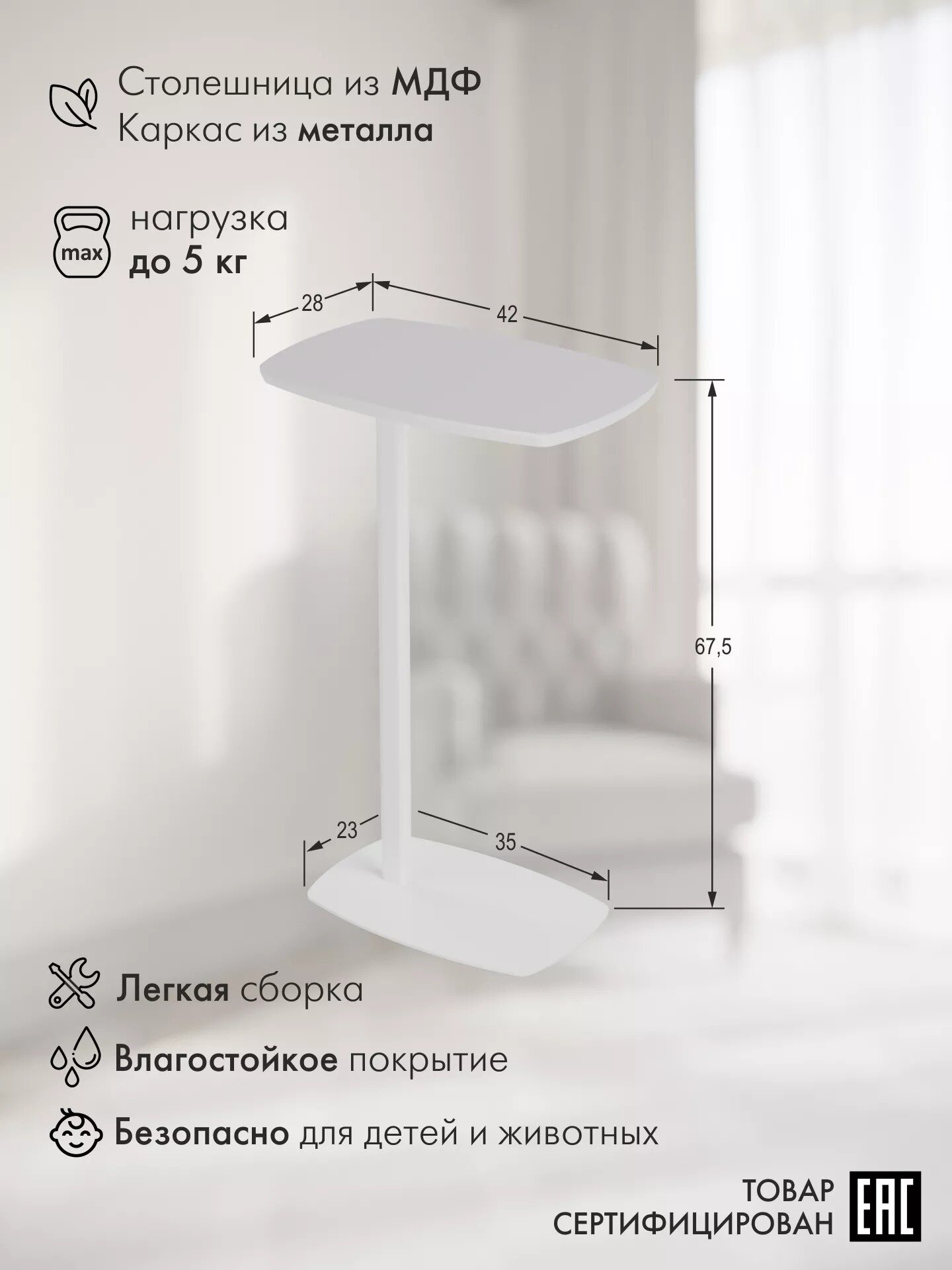 Купить Придиванный стол Калифорния ДЕЙ колор Белый Размеры: Высота 675мм Глубина 280мм Ширина 420мм с доставкой по всей России.