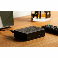 Телевизионный приемник DVB-T2 Rombica Cinema TV One предназначен для ТВ-устройств, не имеющих внутреннего цифрового приемника. Благодаря поддержке нормативов цифрового телевидения DVB-C, DVB-T и DVB-T2 она разрешает смотреть по телевизору разные кабельные и эфирные цифровые телеканалы. Кроме того, она дает возможность записи видео с экрана на подключенный флеш-накопитель. Поддерживается видеозапись в форматах H.264, MPEG2 и MPEG4. Конфигурацией модели предусмотрена поддержка звука AC3 (Dolby Digital), телегид и встроенный медиаплеер. Управление устройством происходит при помощи дистанционного пульта.