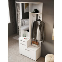 Прихожая белая, шкаф для прихожей с зеркалом и ящиками (ВхДхГ) 204х80х36 см, Витра
