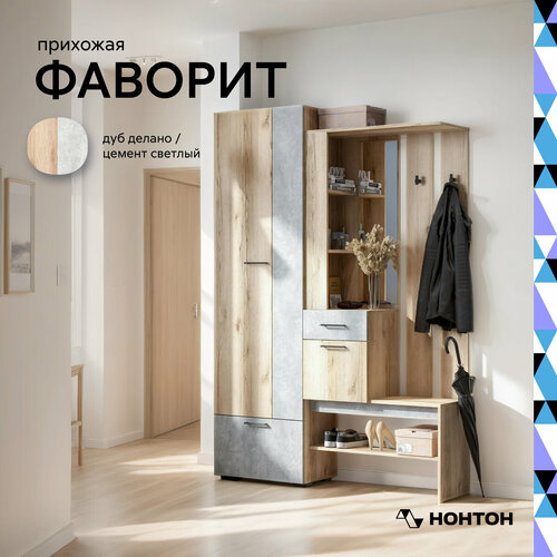 Сочетание светлого оттенка дерева и натурального цемента в Прихожей Фаворит идеально подходит для помещений, обычно лишенных дневного освещения.