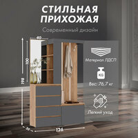 Товар поставляется в разобранном виде, что облегчает его транспортировку и установку. Вес прихожей составляет 76,7 кг, максимальная нагрузка - 20 кг.