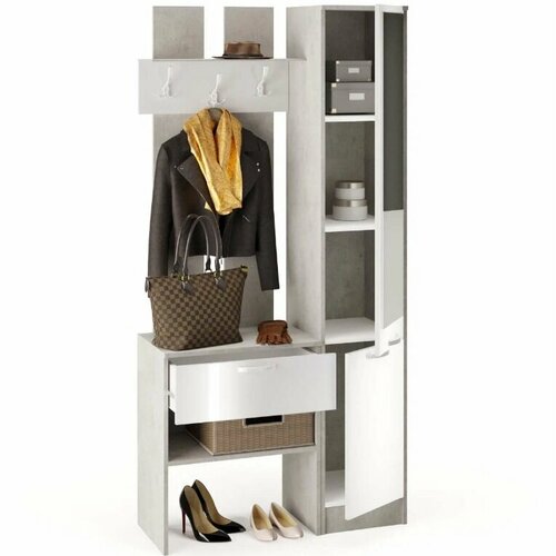 Купить Прихожая Иннэс-3 универсальная (ш950*г360*в1950) бетон светлый/белый глянец с доставкой по всей России.