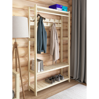 - Полки - 3шт - Крючки для одежды - 13шт в 2 ряда - Перекладина для плечиков - 123см - Расстояние между верхними и нижними полками 32см - Расстояние между верхним рядом крючков и второй полкой - 125см - При необходимости вешать длинную одежду (например плащ) вторую полку можно не устанавливать - Полки собраны из широких реек с зазором 5мм