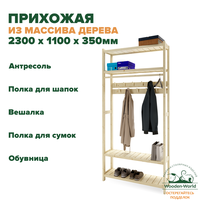 Открытый стеллаж — идеальное решение для оптимизации хранения вещей и удобного доступа к ним. Полка для сумок, антресоль и обувница предоставляют дополнительные возможности для хранения, не загромождая при этом пространство. Деревянная прихожка - практичное и стильное решение для вашего интерьера.