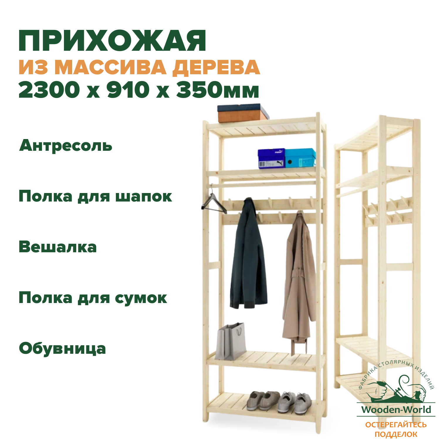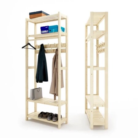 Открытый стеллаж — идеальное решение для оптимизации хранения вещей и удобного доступа к ним. Полка для сумок, антресоль и обувница предоставляют дополнительные возможности для хранения, не загромождая при этом пространство. Деревянная прихожка - практичное и стильное решение для вашего интерьера.