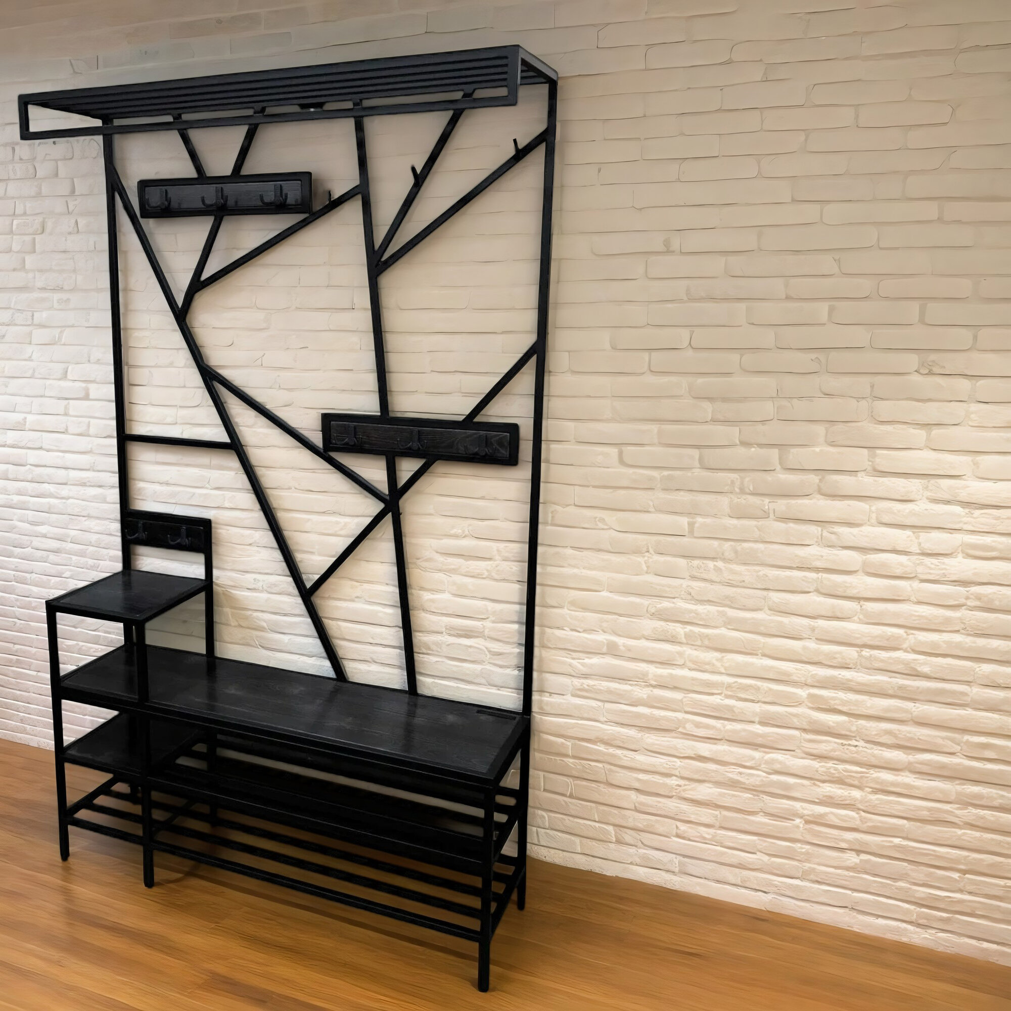 Прихожая Лофт из НАТУРАЛЬНОГО ДЕРЕВА и СТАЛИ Прихожая для узкого коридора 34*120*200(В)см Цвет ЭБЕН: сравнение цен, характеристики, фото, актуальное наличие и цены.