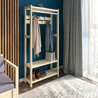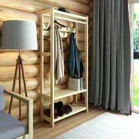 - Полки - 3шт - Крючки для одежды - 7шт в 2 ряда - Перекладина для плечиков - 66см - Расстояние между нижними полками 32см - Расстояние между верхним рядом крючков и второй полкой - 125см - При необходимости вешать длинную одежду (например плащ) вторую полку можно не устанавливать - Полки собраны из широких реек с зазором 5мм