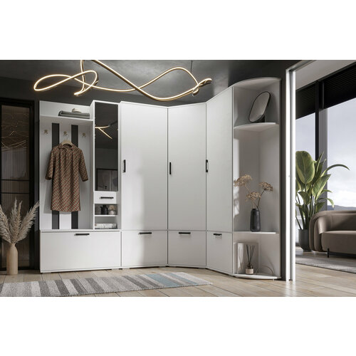 1. Вешалка с зеркалом Ника белый гладкий - В 203.2 x Г 35.4 x Ш 91 см. 2. Вешалка-пенал угловая Ника белый гладкий - В 203.2 x Г 35.4 x Ш 35.4 см. 3. Шкаф бельевой Ника белый гладкий - В 203.2 x Г 35.4 x Ш 50 см. 4. Шкаф платяной Ника белый гладкий - В 203.2 x Г 35.4 x Ш 60 см. 5. Шкаф угловой Ника белый гладкий - В 203.2 x Г 70.1 x Ш 70.1 см.