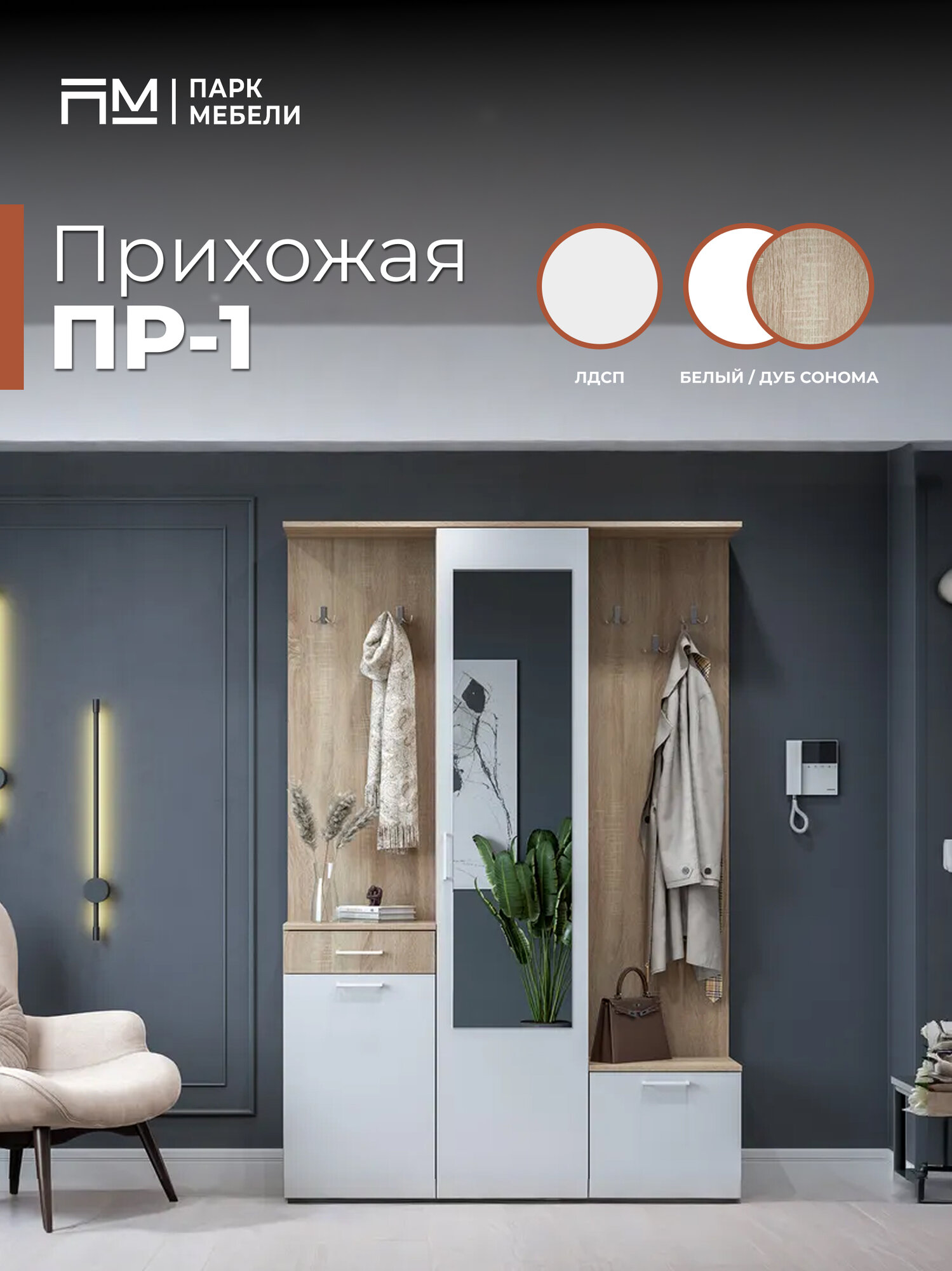 Прихожая визуально состоит из нескольких элементов. Слева тумба со щитом шириной 450 мм.