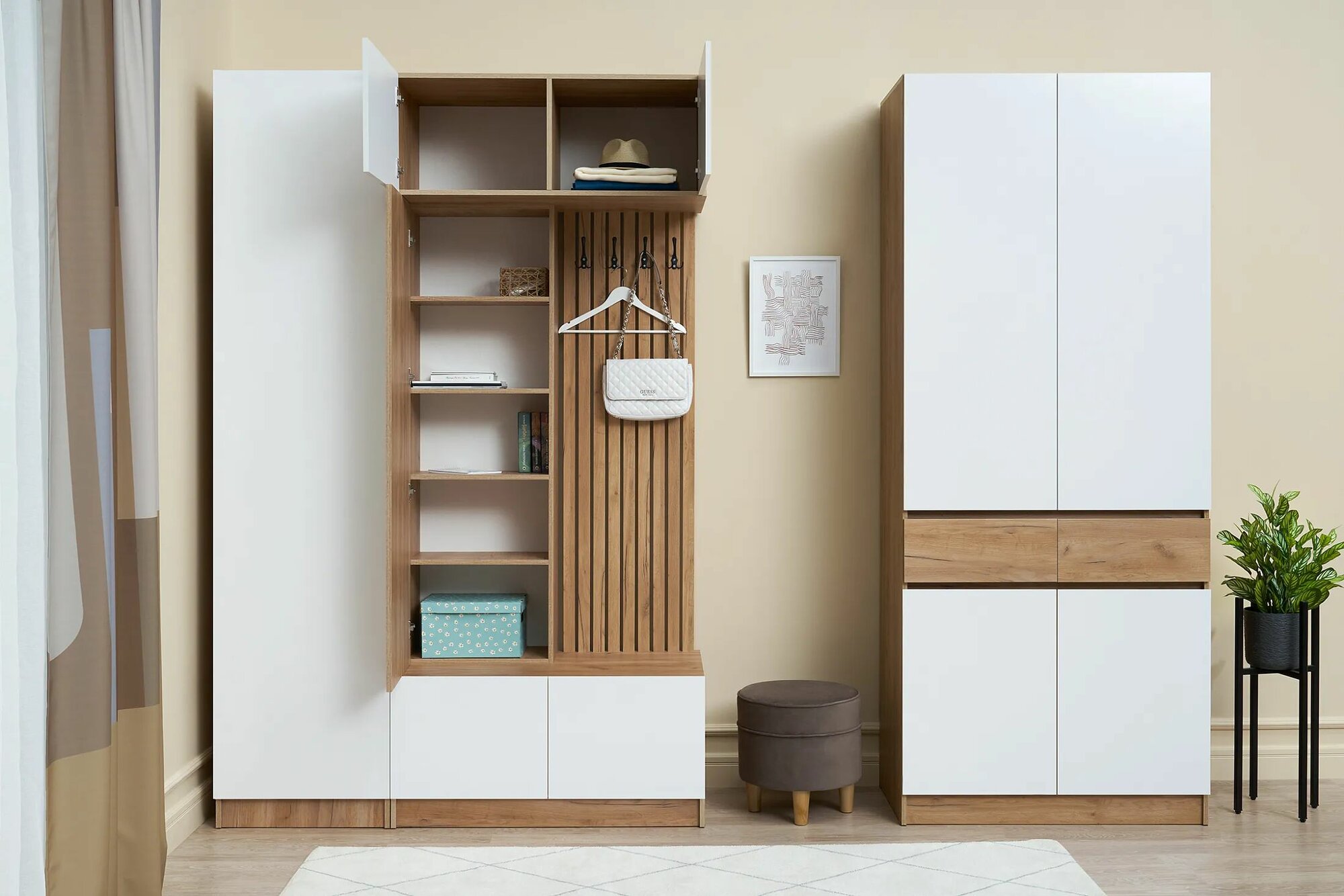 Прихожая Роджина с вешалками Белый_глянец, дуб крафт