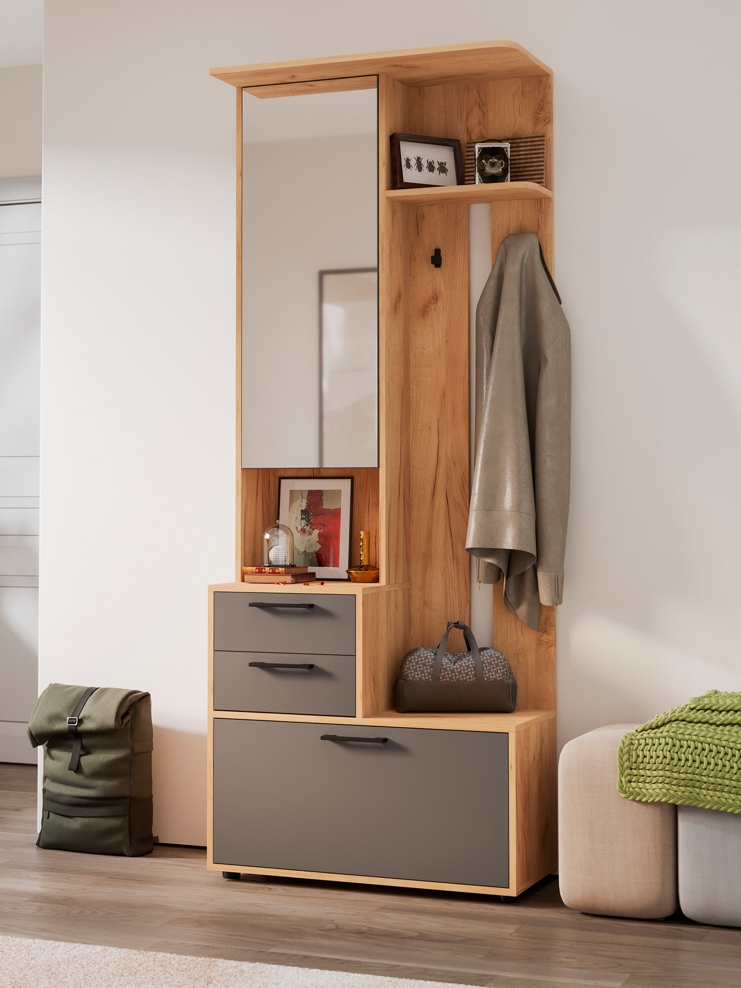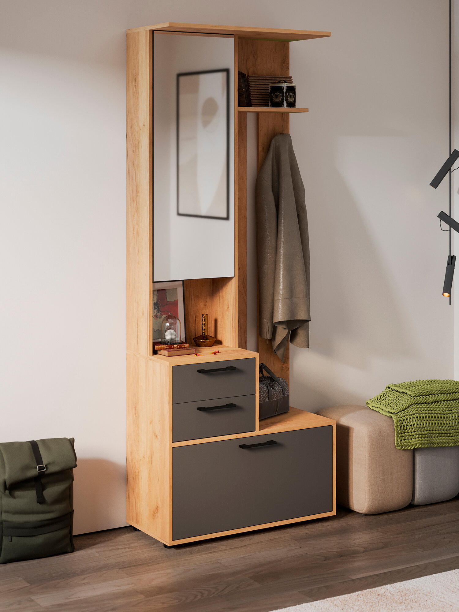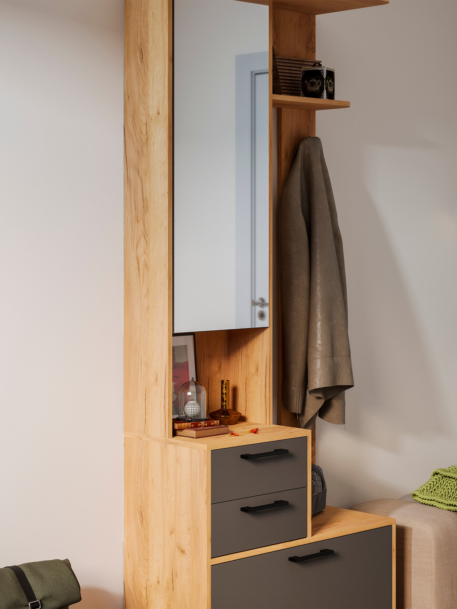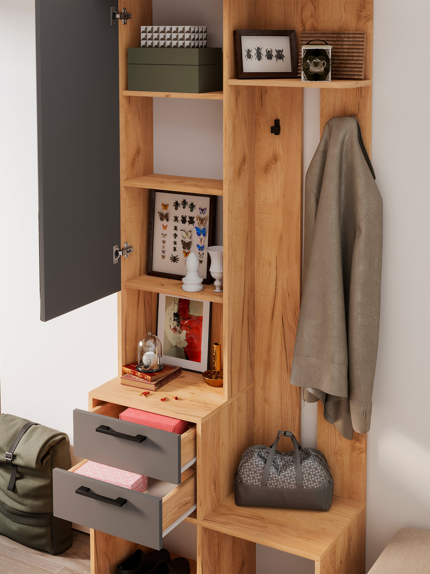 Шкаф-секция Витра тип 1 - классический минималистичный дизайн, сбалансированная конструкция, доступная цена и разнообразие расцветок набора позволяют приобрести подходящую модель для помещения, оформленного в любом стиле, добавляя ему комфорт и уют. Лаконичный и элегантный шкаф не только обеспечит удобное хранение, но и станет акцентом комнаты. Идеальный вариант прихожей для тех, кто ищет долговечное и стильное решение для хранения своей одежды и аксессуаров.