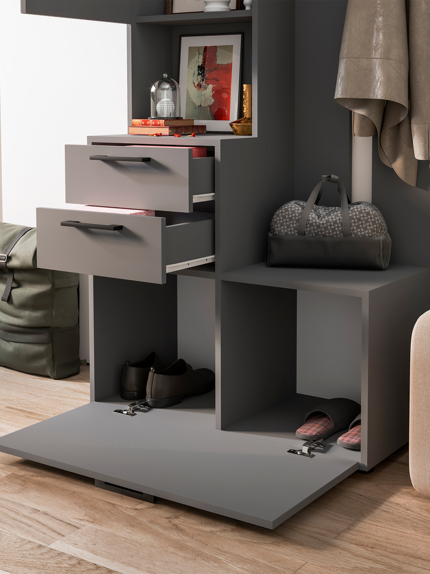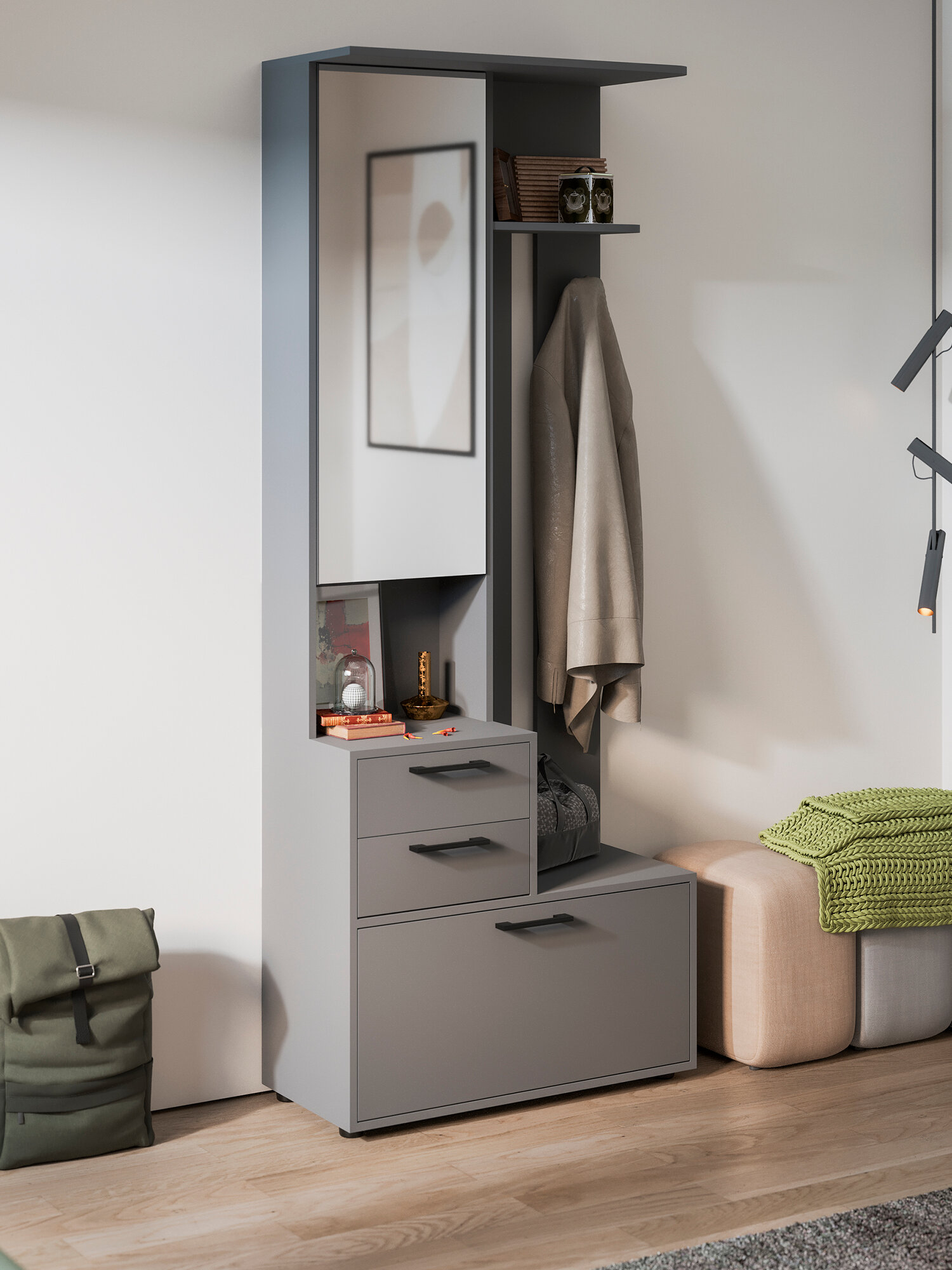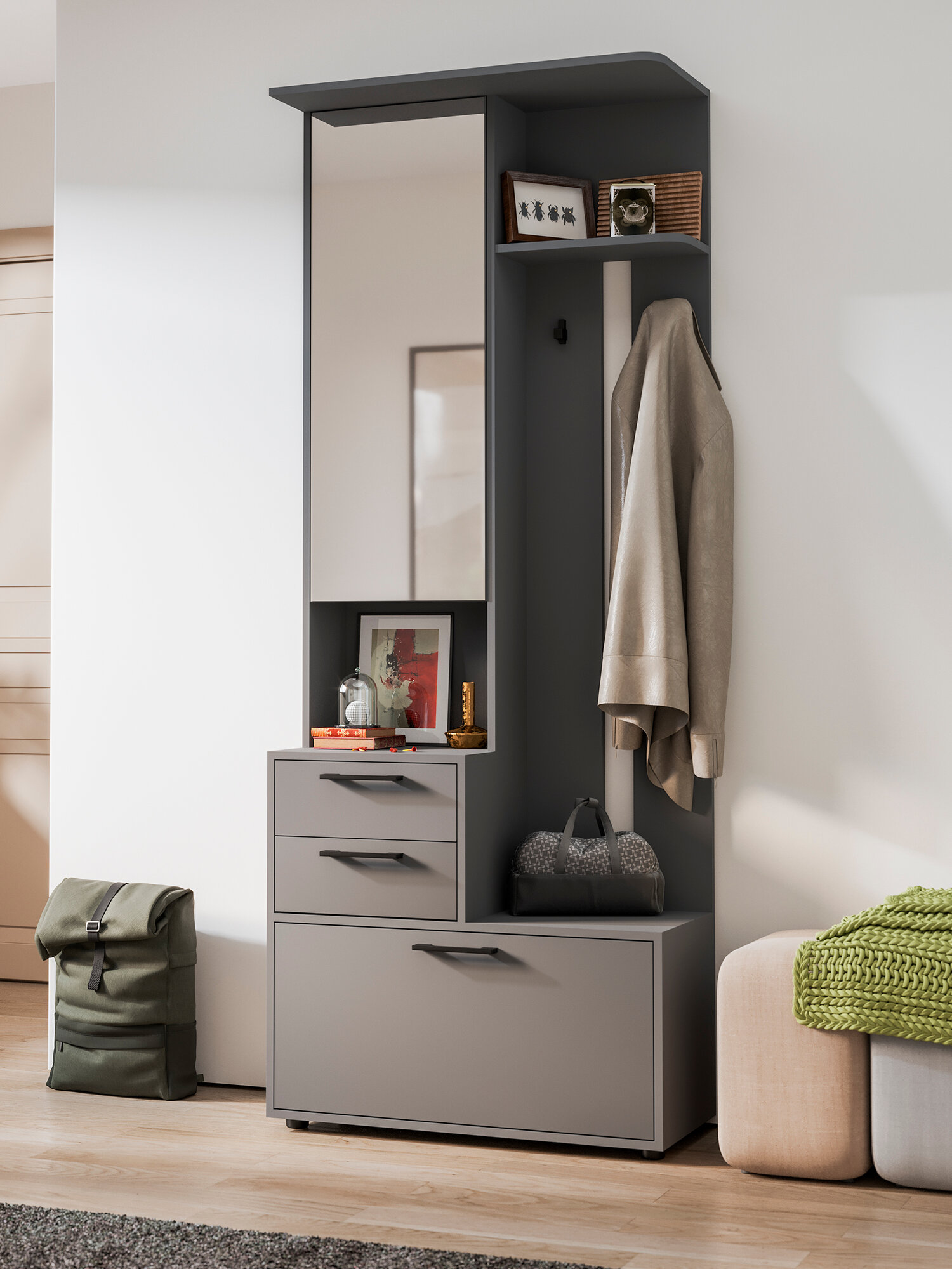 Прихожая, шкаф для прихожей с зеркалом и ящиками серая (ВхДхГ) 204х80х36 см, Витра: сравнение цен, характеристики, фото, актуальное наличие и цены.