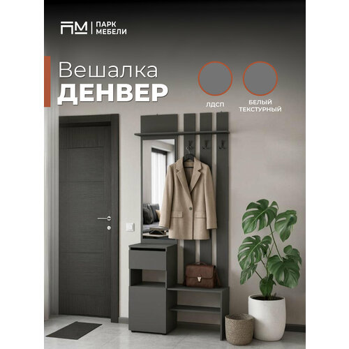 Прихожая «SV Мебель Денвер», 101х33х199,9 см, серая, с зеркалом и обувницей: сравнение цен, характеристики, фото, актуальное наличие и цены.