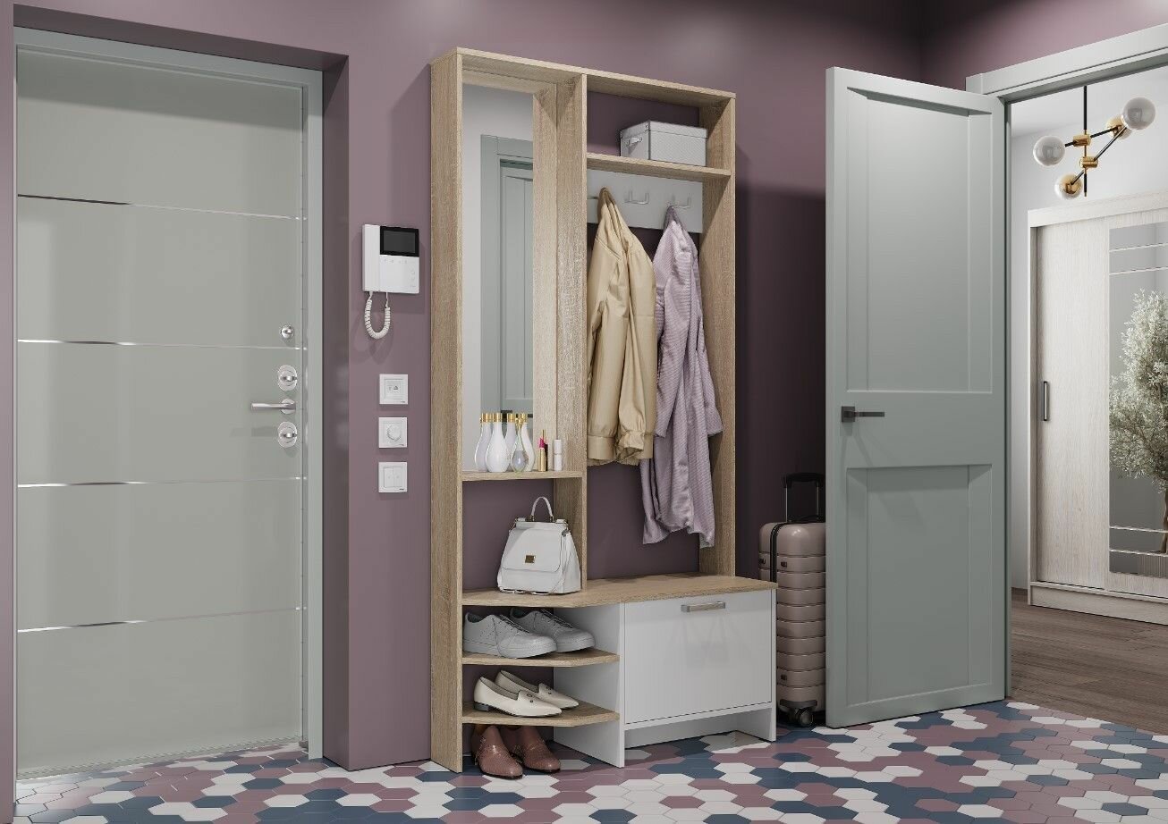 Компактная прихожая Тео – продуманное до мелочей готовое решение для небольшой входной зоны.