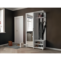 Готовое решение для прихожей Ларго-2 сочетает в себе универсальный дизайн, компактный размер и продуманное наполнение. Модуль оснащен евроштангой за зеркальной дверцей для верхней одежды на плечиках, 2-мя закрытыми полками, открытой тумбой под обувь, 3-мя надежными крючками и верхней полкой для аксессуаров. Это отличный вариант для организации храния в малогабаритной прихожей или узком коридоре.