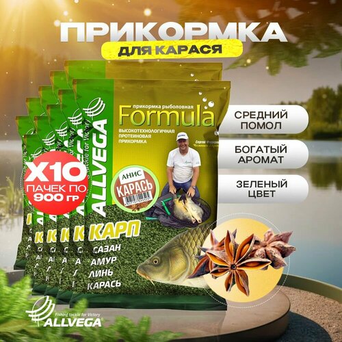 Купить Прикормка для рыбалки ALLVEGA Formula карась с ароматом аниса 10 пачек по 0.9 кг с доставкой по всей России.