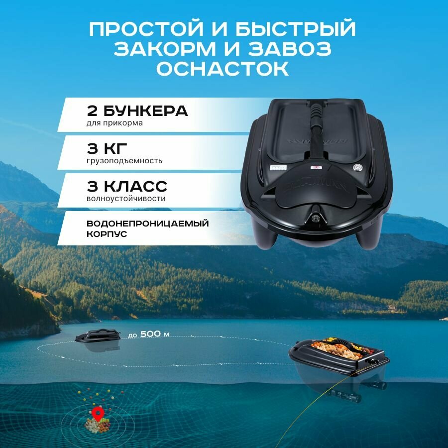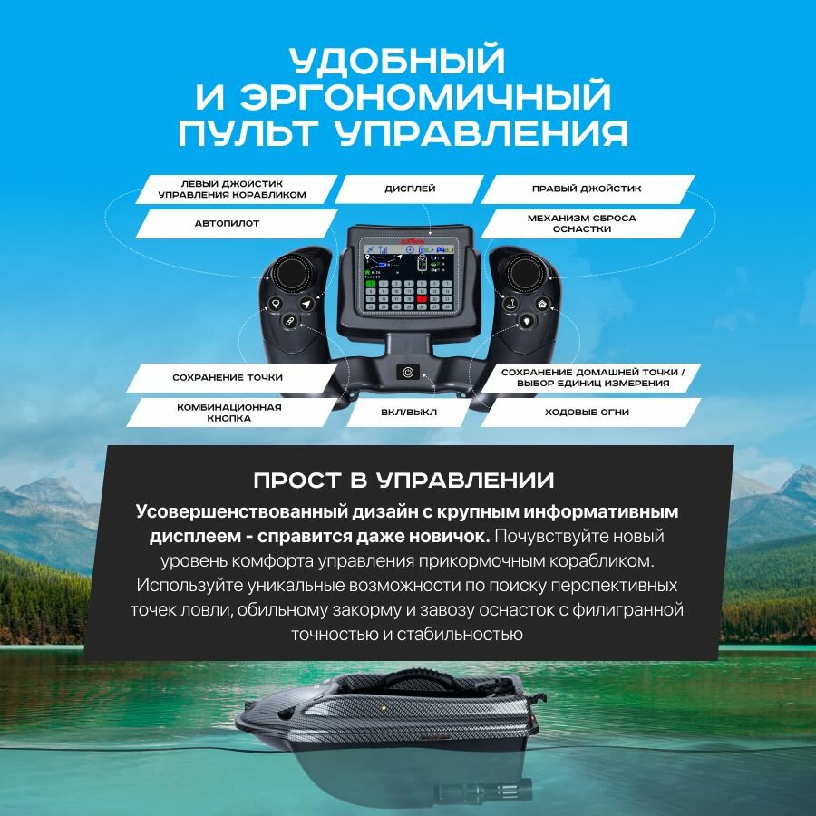 Комплектация GPS - Воспользуйтесь встроенным gps модулем и другими функциями прикормочного кораблика: добавляйте точки закорма в память кораблика, закармливайте точки ловли и завозите оснастки.