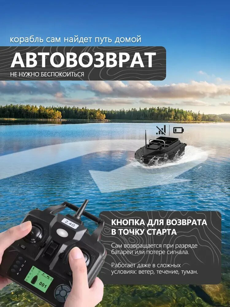 Беспроводное управление и функция GPS не позволяют выпустить приманку далеко в озере, реке и водохранилище. Большой контейнер для наживки может вместить около 4,4 фунта наживки для всех игровых рыб. Простота в эксплуатации для любителей рыбалки или начинающих, а также для детей. Особенности: Функция GPS и помогает установить 16 произвольных точек позиционирования, и лодка может быть вперед и назад на основе точки, которую вы устанавливаете. При обнаружении потери сигнала или низкого заряда батареи лодка автоматически вернется в исходное положение через 15 секунд. Не беспокойтесь о потере. ЖК-дисплей пульта будет отображать несколько данных для вашего, таких как питание батареи, расстояние, компас, положение и светильник. Большой контейнер для наживки с грузоподъемностью около 4 фунтов для большего количества наживок. Беспроводное управление и Круизный переключатель с фиксированной скоростью позволяют выпустить приманку далеко. (Дистанционный диапазон: 400-500 метров)Двойные двигатели и двойные пропеллеры делают лодку легкой в спорте и кролировании.1 передние белые огни и 2 задние синие ночные огни для ночной рыбалки и кормления. Лодка приманки питается от перезаряжаемой батареи 5200+12000 мАч . Обтекаемый корпус АБС уменьшает Водонепроницаемость и устойчивость к волнам 5 уровней. Пульт дистанционного управления питается от четырех батарей АА (в комплекте). Предоставляется сумка для удобного хранения и переноски. Спецификации: Размер изделия: 485x264x160 ммВес товара: 1900 гЕмкость аккумулятора: 7,4 В х 5200+12000 мАчДиапазон управления: 400-500 метровМатериал: пластик ABSОсобенности: постоянный круизный моторПрименение продукта: реки, озера, прибрежные воды и т. д. Система освещения: 1 передняя фара, 1 задний маякУправление: автоматический возврат, вперед/назад/влево/вправо, режимы быстрого/медленного движения, многофункциональный пульт с GPSПитание: лодка - литиевый аккумулятор (7,4 В / 5200+12000 мАч), пульт управления - 2 батарейки типа АА Показать полностью