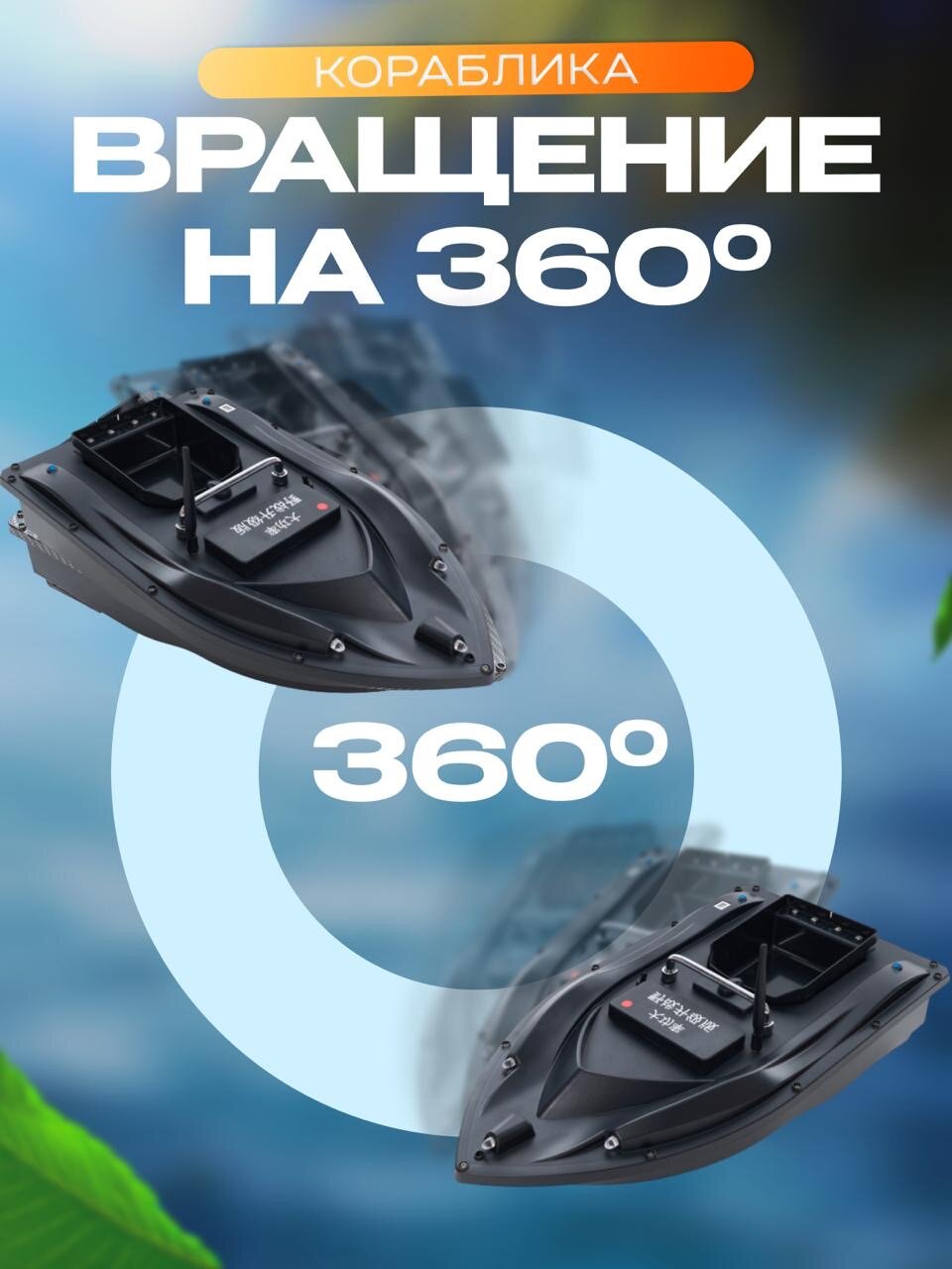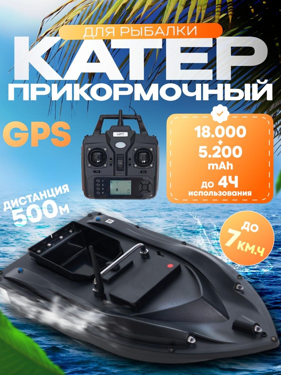 Уникальная разработка – кораблик для прикормки и успешной рыбалки. Обязательно захватите с собой этот гаджет. Лодка оснащена мотором на аккумуляторе и пультом управления. Корабль покрывает радиус до 600 метров. Можно разместить корм для рыбы во вместительный бункер. В контейнеры входит до 2 кг приманки. Подкормка выгружается в нужном вам месте. Модуль запоминает до 99 точек. Система автоматически и быстро ловит gps сеть. Встроенный 6-ти осевой гироскоп позволяет эффективно противостоять ветру и волнам. Моторчик весьма мощный и обеспечивает быстрое перемещение судна – скорость до 6 км/ч. Есть несколько режимов подсветки. В комплект входит сумка и зарядка. Также в набор включены аккумуляторные батарейки. Такой катер – это отличное снаряжение для профессионального рыбака. Но и любителю такие рыбацкие снасти будут весьма кстати. Это просто прекрасный подарок для увлеченного летней рыбалкой. Включите в свои рыболовные принадлежности этот кораблик. И пусть ваша рыбная ловля этим летом будет еще более удачной! В комплекте входит 2 аккумулятора 5200mah и 18000mah