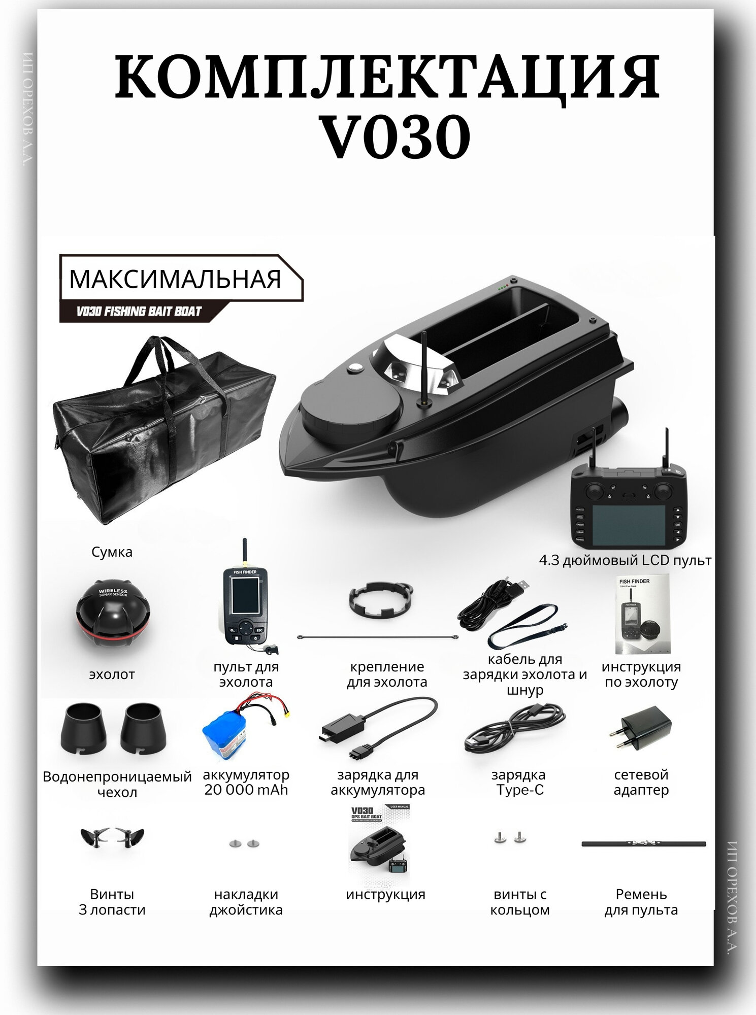 Прикормочный кораблик + эхолот V030 20000 мАч, Черный: сравнение цен, характеристики, фото, актуальное наличие и цены.